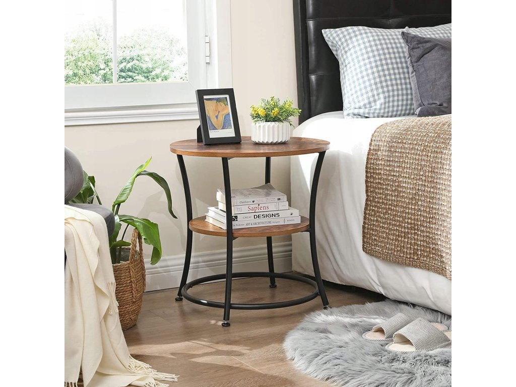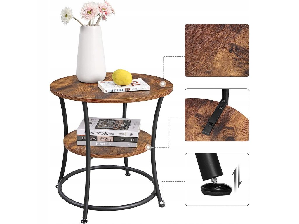 Stůl v rustikálním stylu, který je přiměřeně stylizovaný věku. Stolek můžeme používat dvěma způsoby: jako konferenční stolek v obývacím pokoji a jako odkládací stolek v ložnici. Záleží jen na vás, co momentálně potřebujete více. Další výhodou stolku je rychlost jeho sestavení. Složíte ho během okamžiku, což je velmi užitečné v nouzových situacích, například když potřebujete další místo na občerstvení nebo zákusky a na hlavním jídelním stole už není místo na nic jiného. Díky své univerzálnosti a praktičnosti se tento stůl stane jedním z vašich oblíbených kusů domácího nábytku. Pokud tento kus nábytku použijeme jako odkládací stolek, můžeme jej umístit vedle postele a mít na něm po ruce všechny věci, které chceme mít po ruce, jako jsou knihy, budík, květiny v květináči, nebo si na něm můžeme vystavit své krásně zarámované fotografie. Kulaté stolky jsou oblíbené zejména v domácnostech s malými dětmi, protože se nemusíme bát, že dítě narazí do hrany desky stolu. Nejnovějším módním trendem je nábytek v loftovém stylu. Stůl se jistě hodí do interiéru nejednoho pokoje. Kovová konstrukce zajišťuje stabilitu nábytku. Dokonale sladěné prvky rámu a rustikální zasazení desky stolu a police dodají vašemu interiéru kouzlo. Postarejte se o estetiku svého obývacího pokoje, pokoje nebo ložnice výběrem osvědčených výrobků nejvyšší kvality.