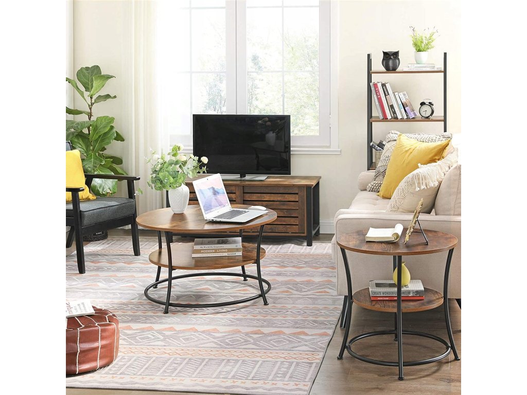 Stůl v rustikálním stylu, který je přiměřeně stylizovaný věku. Správné rozměry stolku poskytují dostatek prostoru pro šálky s kávou, notebook, dálkové ovládání televizoru a podnos na svačinu. Další výhodou stolku je rychlost jeho sestavení. Výrobek se složí během okamžiku, což je velmi užitečné i v nouzových situacích, např. když potřebujete další místo na občerstvení nebo zákusky a na hlavní jídelní stůl se nic jiného nevejde. Díky své univerzálnosti a praktičnosti se tento stůl stane jedním z vašich oblíbených kusů domácího nábytku. Kulaté stoly nebo lavice jsou oblíbené zejména v domácnostech s malými dětmi, protože se nemusíte bát, že dítě narazí do hrany desky. Nábytek v loftovém stylu je nejnovějším módním trendem. Stůl se jistě hodí do interiéru nejednoho pokoje. Kovová konstrukce zajišťuje stabilitu nábytku. Dokonale sladěné prvky rámu a rustikální zasazení desky stolu a police dodají vašemu interiéru kouzlo. Postarejte se o estetiku svého obývacího pokoje, ložnice nebo obývacího pokoje výběrem osvědčených výrobků nejvyšší kvality.