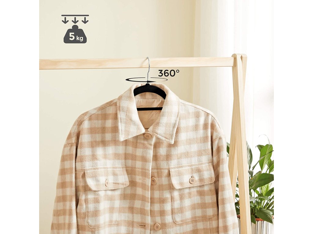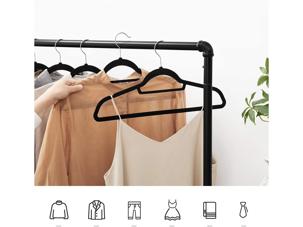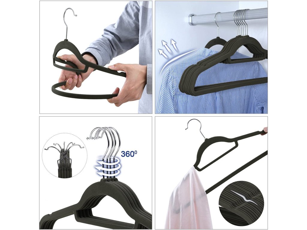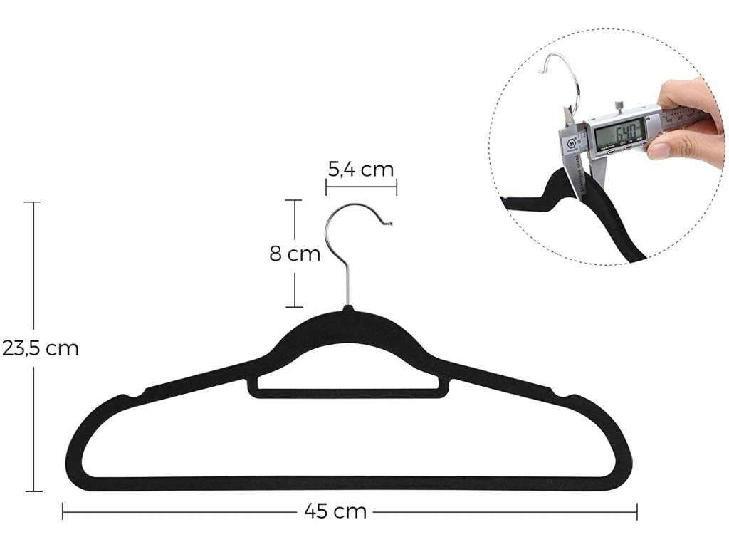 Sada 50 velurových ramínek na šaty je nezbytnou součástí vybavení našich šatníků. Věšáky jsou ideální na kalhoty, košile, kravaty, opasky a těžké obleky a zimní bundy.