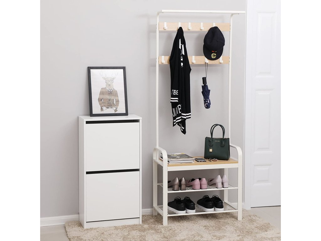 Máte už dost nepořádku na chodbě nebo v předsíni? Bundy a kabáty se povalují na židlích a křeslech v obývacím pokoji a jídelně, místo aby visely na věšáku? Pokud je odpověď ano, pak jste na správném místě. Představujeme vám věšák na oblečení se sedákem a policemi na boty, který vnese pořádek a čistotu. Tento praktický kus nábytku vám uspořádá svrchní oblečení, doplňky a další drobnosti, jako jsou například klíče.