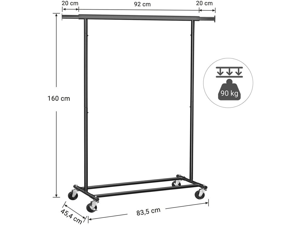 Ocelová konstrukce zajišťuje stabilitu tohoto kusu nábytku, takže je ideálním produktem pro všechna roční období; oceníte ho zejména v zimním období, kdy na něj můžete zavěsit těžké bundy a kabáty. Své místo na tyči najdou také nažehlené košile a šaty pro zvláštní příležitosti.