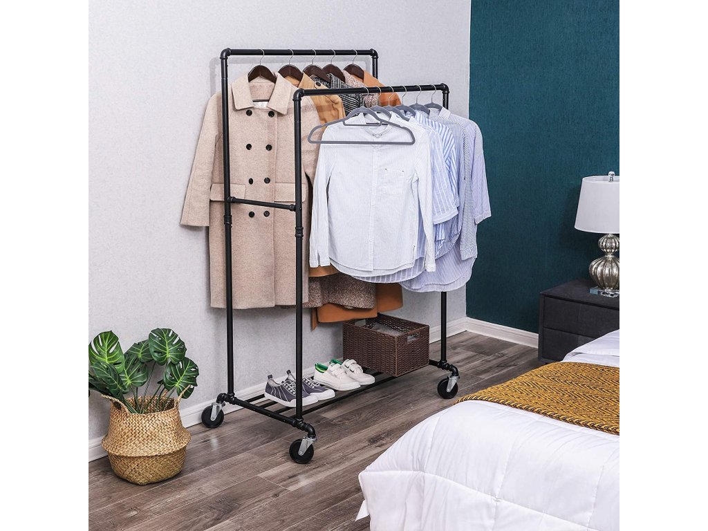 Stojan má 2 velmi stabilní a pevné tyče pro uložení kabátů, bund, šatů, košil a sak. Kromě toho můžeme na tyč zavěsit šály, šátky nebo komíny. Hodí se zejména v období svateb a přijímání, kdy potřebujeme z ramínka sundat dokonale vyžehlené košile nebo šaty.
