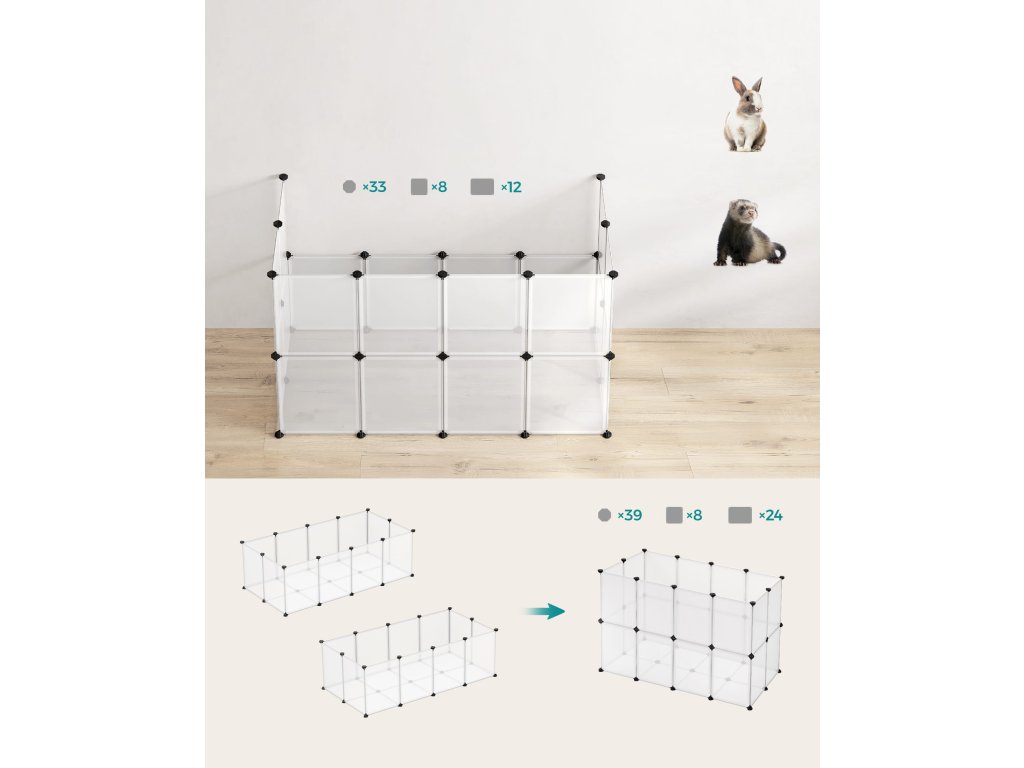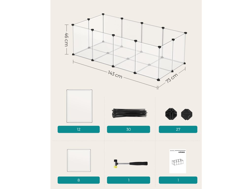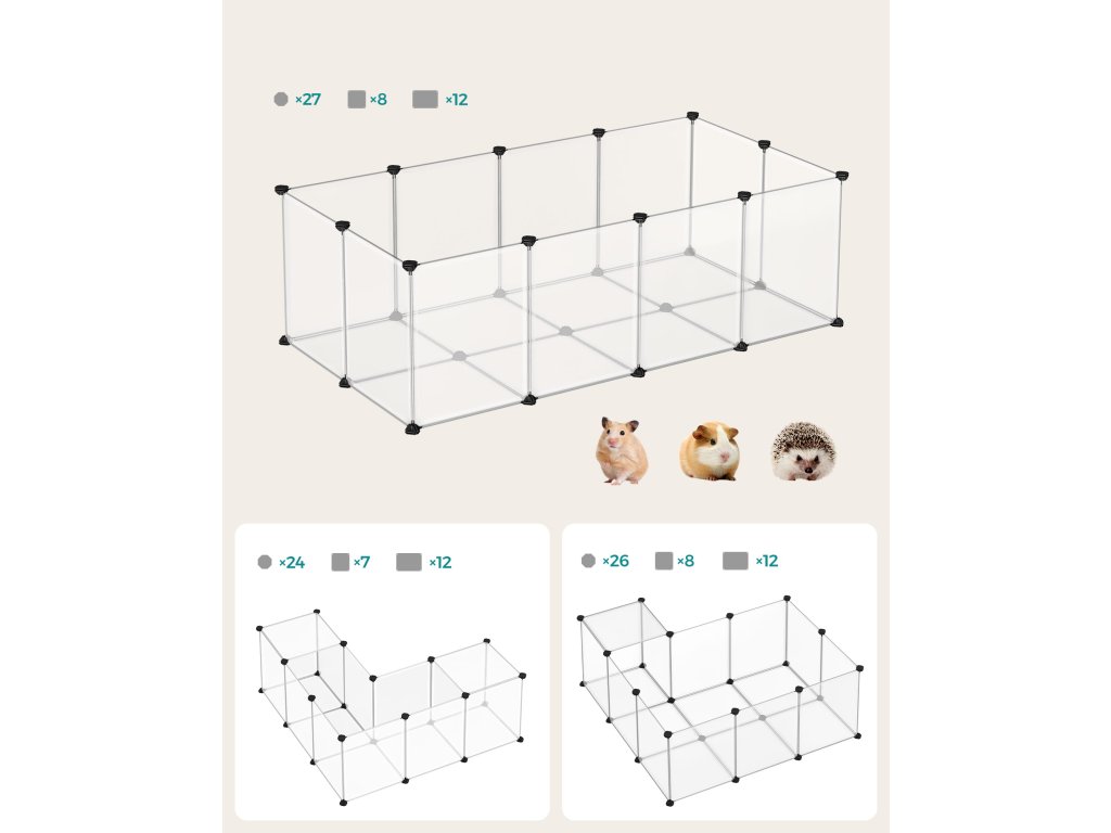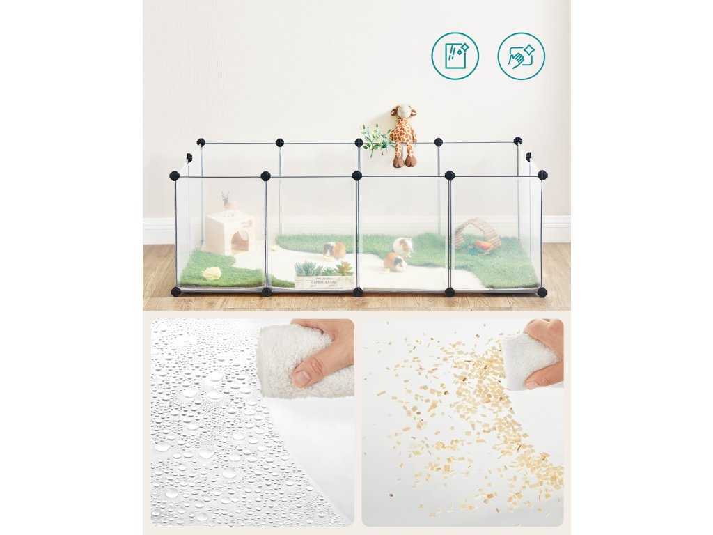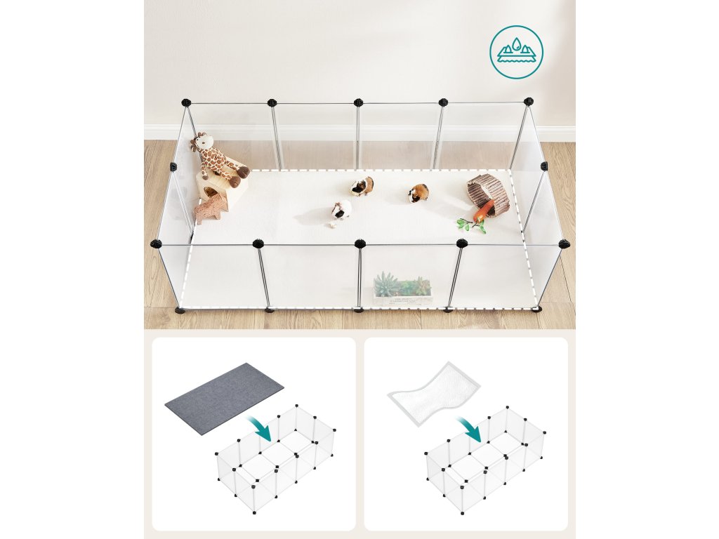 Modulární ohrádka pro malá domácí zvířata, jako jsou křečci, morčata, ježci, zakrslí králíci. Ohrádka je ideální pro majitele domácích zvířat, zejména když potřebují svým mazlíčkům poskytnout bezpečný prostor doma.