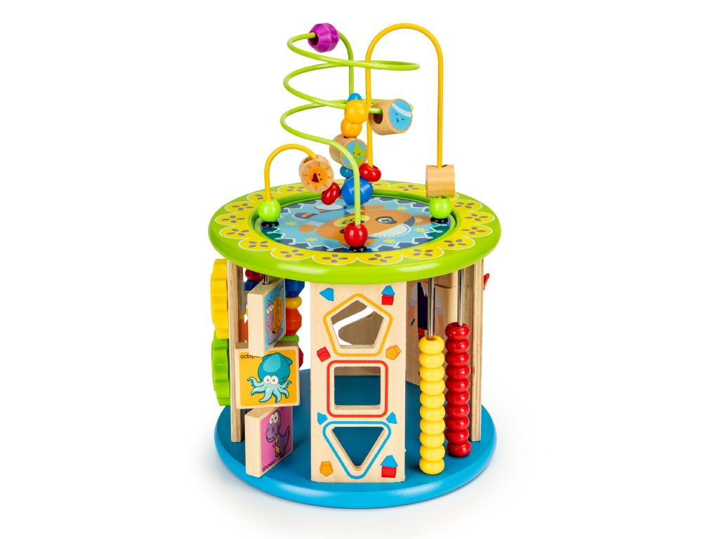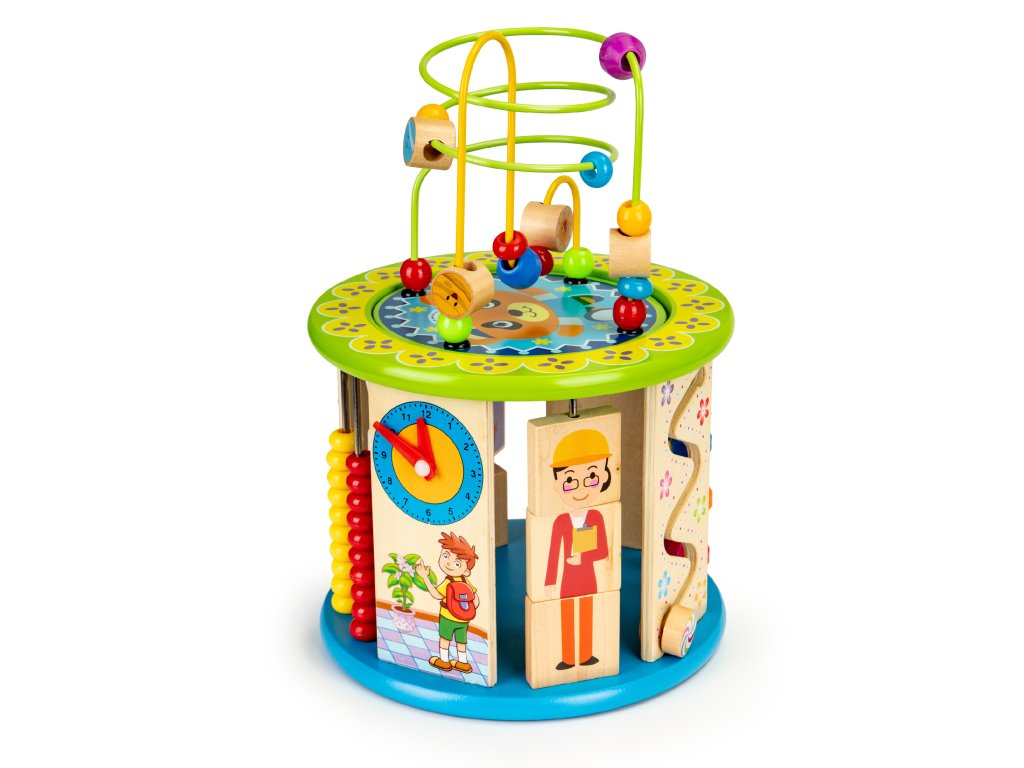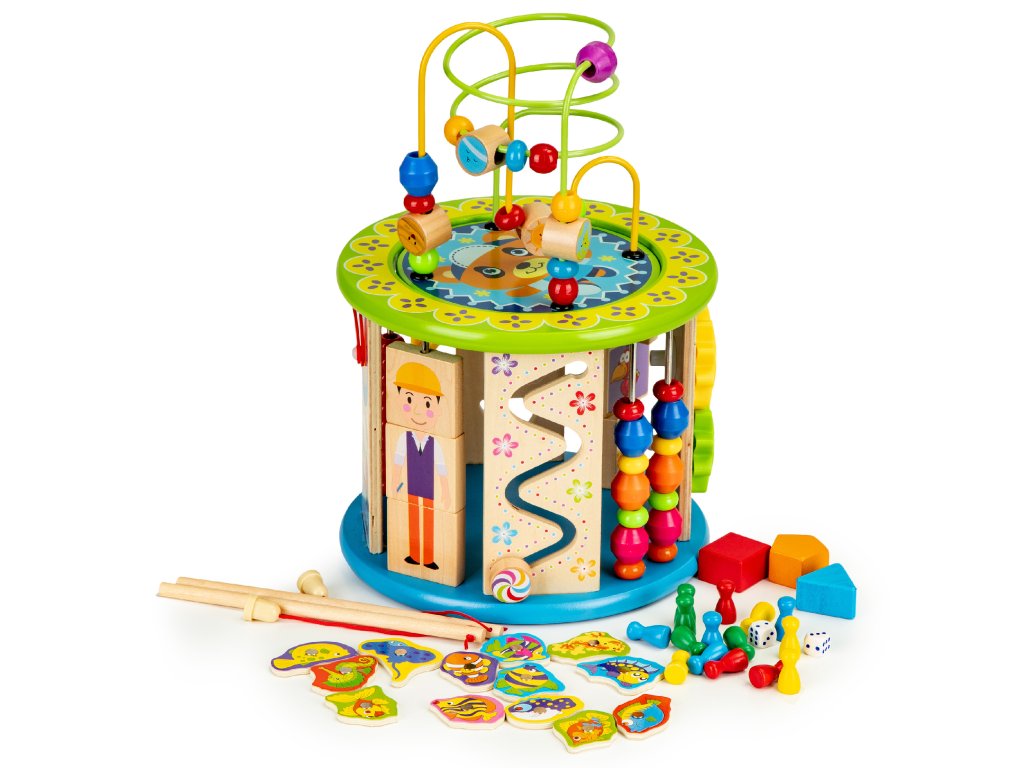 Vzdělávací dřevěná kostka s hrami, bloky, rybařením