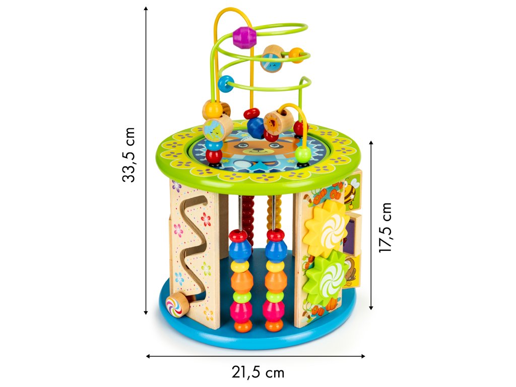 VZDĚLÁVACÍ DŘEVĚNÁ HRAČKA Pro děti od 3 let Vzdělávací hračkarozvíjející manuální dovednosti Pevná dřevěná konstrukce Blátivé bludiště Hračkové hodiny Otočné prvky Třídička kostek Pohyblivá ozubená kola Doplňkové hry (rybaření, čínská dáma) Certifikáty: CE, EN71, SGS ZÁBAVA A ROZVOJ Každý rodič si přeje, aby se jeho dítě rozvíjelo vhodným a vyváženým způsobem. vzdělávací hračka značky umožní vašemu dítěti rozvoj na mnoha úrovních, a to díky své struktuře, v níž má každá stěna zcela jinou funkčnost a charakter. Naše hračka stimuluje rozvoj batolete v oblasti rozpoznávání tvarů, manuálních dovedností a koordinace ruka-oko. MNOHO FUNKCÍ V JEDNÉ HRAČCE Hračka je plná pohyblivých prvků, které podporují hru a zároveň rozvíjejí schopnosti batolete. Hračka naučí rozpoznávat barvy, tvary, rozvíjí motoriku a zároveň poskytne každému dítěti spoustu zábavy. V horní části se nachází odnímatelný kryt s namontovaným bludištěm a barevnými korálky, hra spočívá v jejich přesouvání z jednoho konce na druhý. Na druhé straně kostky (ve spodní části) se nachází hrací deska pro hru čínské dámy, součástí balení je sada pěšáků a dvě hrací kostky. RYBAŘENÍ RYB Pod krytem s bludištěm se nachází deska, na kterou můžete rozmístit ryby a zahrát si na malého rybáře. Sada obsahuje dva pruty a díky magnetům můžete chytat ryby umístěné na desce. ROZMĚRY Délka: 21,5 cm Šířka: 21,5 cm Výška: 17,5 cm Výška s proložením: 33.5 cm SPECIFIKACE Určení: od 3 let Certifikáty: CE, EN71, SGS Hmotnost: 1 kg Kód produktu: 1: HM175920 Výrobce:Doplňkové parametry