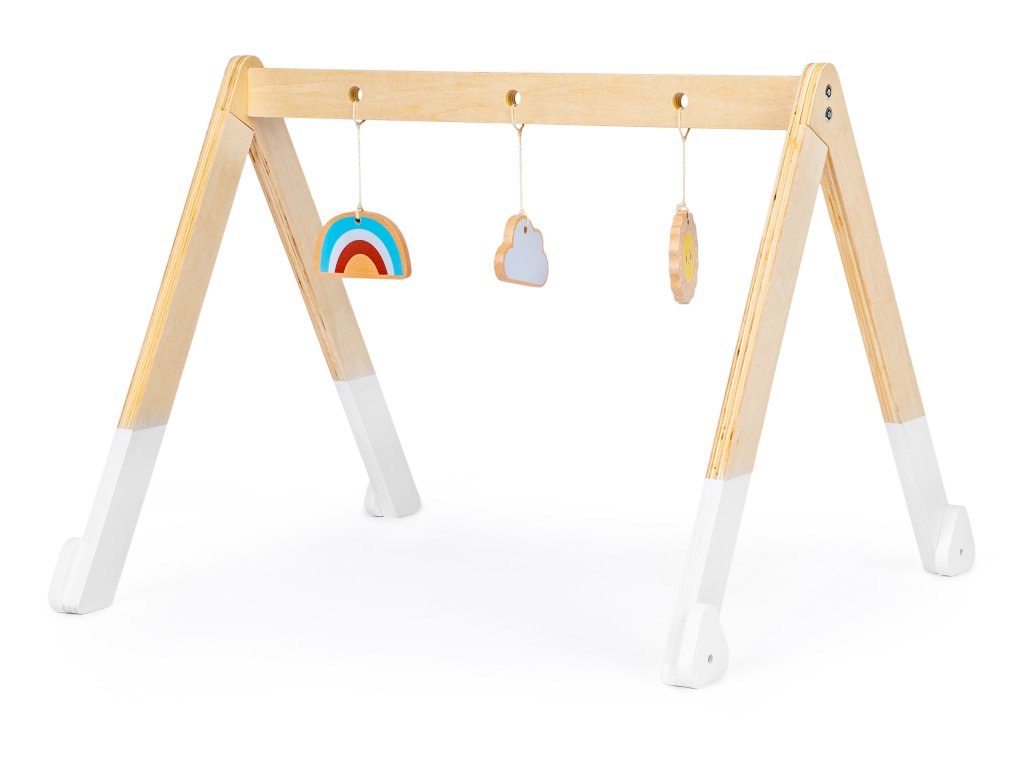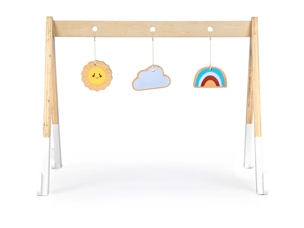 GYMNASTICKÝ STOJAN PRO DĚTI Hračka pro miminka Dřevěná konstrukce 3 závěsné dřevěné hračky Rozvíjí manuální a motorické dovednosti Ideální pro umístění do ohrádky nebo postýlky Tlumené barvy Bezpečná hračka pro děti Certifikáty: CE, EN71 značka výrobku VÝVOJ DÍTĚTE Od narození se děti usilovně snaží rozvíjet své manuální dovednosti, díky nimž mohou objevovat a zkoumat svět kolem sebe. Na gymnastickém stojanu se vaše batole bude snažit uchopit zavěšené hračky, což mu pomůže rozvíjet manuální a motorické dovednosti, naučí se ovládat pohyb rukou, dlaní a prstů, a to vše v kombinaci se zábavou. DOBŘE NAVRŽENÉ Celá je vyrobena ze dřeva, na její příčce jsou zavěšeny 3 barevné hračky. Každá hračka má jiný tvar a barvu, takže vaše dítě je náležitě stimulováno. Hračka je zbavena ostrých, nebezpečných hran a je pokryta barvami bezpečnými pro děti. HRÁT SI V DĚTSKÉ POSTÝLCE NEBO V DĚTSKÉ POSTÝLCE Pokud rozměry postýlky vašeho batolete umožňují umístit stojan dovnitř, budete mít bezpečné místo na hraní. Hračka vám umožní ztlumit a dokonce i uspat vaše batole na vhodném místě. SPECIFIKACE: Rozměry: 61 x 54 x 45 cm VĚKOVÁ SKUPINA: +0 VÝROBNÍ MATERIÁL: dřevo CERTIFIKÁTY: CE, EN71 SAMOMONTÁŽNÍ VÝROBEK KÓD VÝROBCE: CA12231 ZNAČKA:Doplňkové parametry