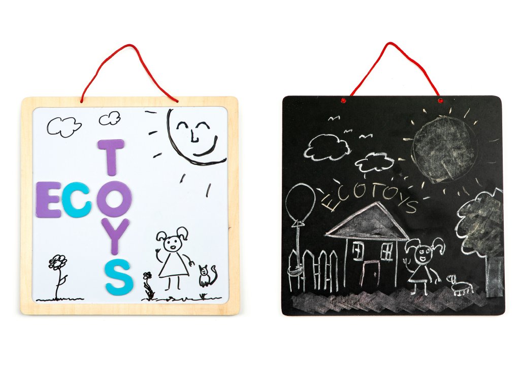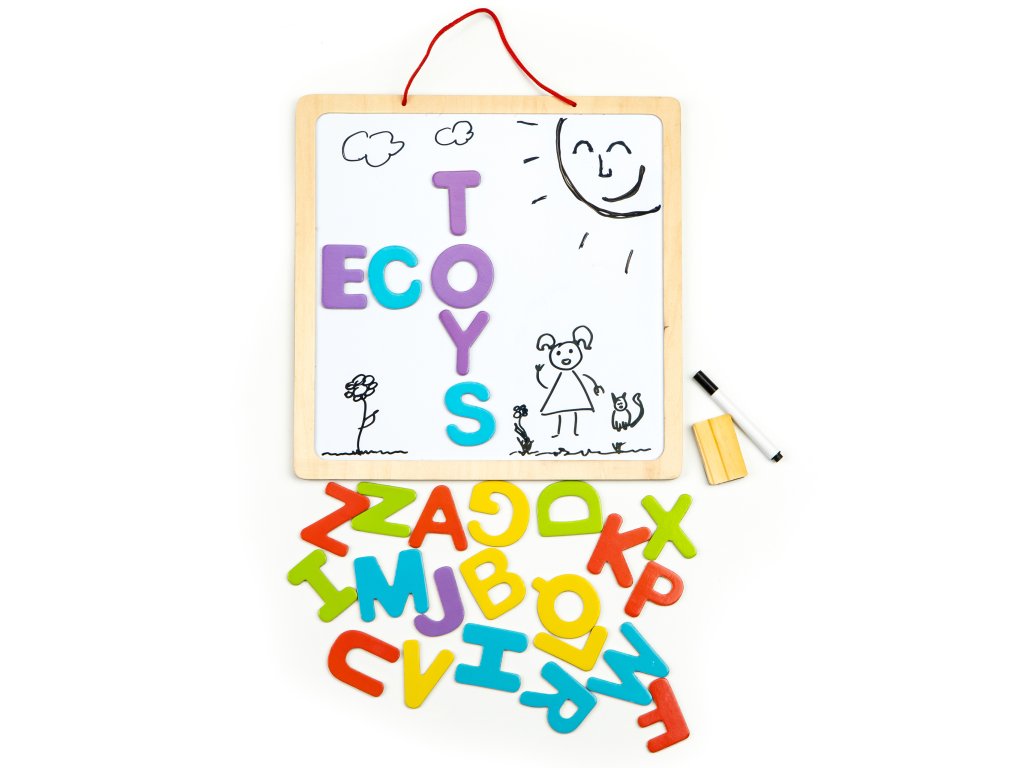VZDĚLÁVACÍ TABULE 2V1 Pro děti od 3 let Bezpečná dřevěná konstrukce Možnost zavěšení Oboustranná kreslicí tabule s křídou nebo fixem Barevná magnetická písmena v balení Křída, houbička, plstěné pero Hračka rozvíjí manuální dovednosti Výrobek značky UČENÍ HROU Na tabuli můžete kreslit křídou, fixem nebo nalepovat magnetická písmena , tyto funkce poskytují mnoho příležitostí pro skvělou a kreativní zábavu. Šarády, kolo štěstí nebo vytváření barevných děl jsou hry, které poskytují spoustu zábavy, ale také rozvíjejí schopnosti dítěte, jeho představivost, kreativitu a logické myšlení. OBOUSTRANNÁ DESKA Hračka má dvě různé strany, díky čemuž každá z nich slouží k jiné zábavě. K dispozici malým výtvarníkům je tradiční černá tabule pro kreslení křídami a bílá tabule pro kreslení stíratelnými fixy nebo přikládání magnetických písmen. Díky mnoha funkcím budou moci děti donekonečna vytvářet svá malá umělecká díla, hrát si na školu nebo slovní hříčky. MAGNETICKÁ PÍSMENA Sada kromě pera, kříd a houbičky obsahuje sadu barevných magnetických písmen, která lze připevnit na tabuli (bílou stranu) nebo na lednici a jiné kovové povrchy. Díky tomu bude mít dítě možnost sestavovat první slova a dokonce i jednoduché věty, písmenka se uplatní také při hře na hádání slov nebo slovní hříčky. SPECIFIKACE: Rozměry: rozměry: 30x30 cm Sada obsahuje: sada obsahuje: tabuli 3 v 1, fix, křídu + houbičku, magnetická písmena Věková skupina: 1: +Vhodné pro děti od 3 let Certifikáty: CE, EN71, SGS Hmotnost: 1,5 kg Kód výrobku: 1: ESC-W-018ADoplňkové parametry