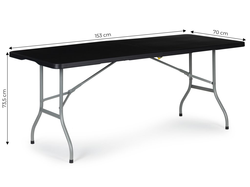 SKLÁDACÍ STŮL 153 x 70 cm Stabilní konstrukce Snadný a rychlý způsob skládání Bílá horní deska z odolného materiálu HDPE Snadno se udržuje v čistotě, odolný proti skvrnám Blokovací mechanismus pro skládání horní části Nohy s podpěrami a zámkem Protiskluzové nožičky na koncích nohou Přepravní rukojeť 100% vodotěsnost IDEÁLNÍ PRO ZAHRADNÍ SETKÁNÍ Pokud rádi trávíte čas venku se svými blízkými, bude pro vás náš cateringový stůl ideální volbou. Lehká a odolná konstrukce zaručuje správnou stabilitu a jeho rozměry poskytují prostor pro 6 osob. Skládací konstrukce vám umožní vzít si jej s sebou kamkoli, kde se setkáte s přáteli nebo rodinou. FUNKČNÍ KONSTRUKCE Rozměry stolové desky 153 x 70 cm zajišťují pohodlí: bude ideální pro všechny druhy akcí, doma i venku. Nohy jsou zakončeny gumovými nožičkami, které chrání podlahu před poškrábáním a také zabraňují klouzání stolu na mokrém povrchu. BEZPEČNOSTNÍ PRVKY Rozložené nohy stolu mají speciální pojistný kroužek, který umožňuje jejich složení. Nemusíte se tak obávat, že by se konstrukce při náhodném nárazu do stolu nečekaně sklopila. Další ochranu zajišťují speciální kolíky pod deskou stolu, které zajišťují obě jeho části. POHODLNÝ SKLÁDACÍ SYSTÉM Díky speciálnímu skládacímu systému lze stůl složit do kufru a samotné složení trvá 20 sekund. Tato funkce umožní snadné skladování stolu, bude užitečná také při cestování a během venkovních pikniků. Rozměry po složení: 76.5 cm x 70 cm x 7 cm. ROZMĚRY: Rozměry: Rozměry stolní desky: rozměry stolu: 153 cm x 70 cm. Výška stolu: 73,5 cm Rozměry po složení do kufru: 76.5 cm x 70 cm x 8 cm SPECIFIKACE: Hmotnost: 10,1 kg Přípustné zatížení: nosnost: 100 kg Balení: speciálně vyztužená lepenka Kód výrobce: HTF153 BLACK Výrobce:Doplňkové parametry