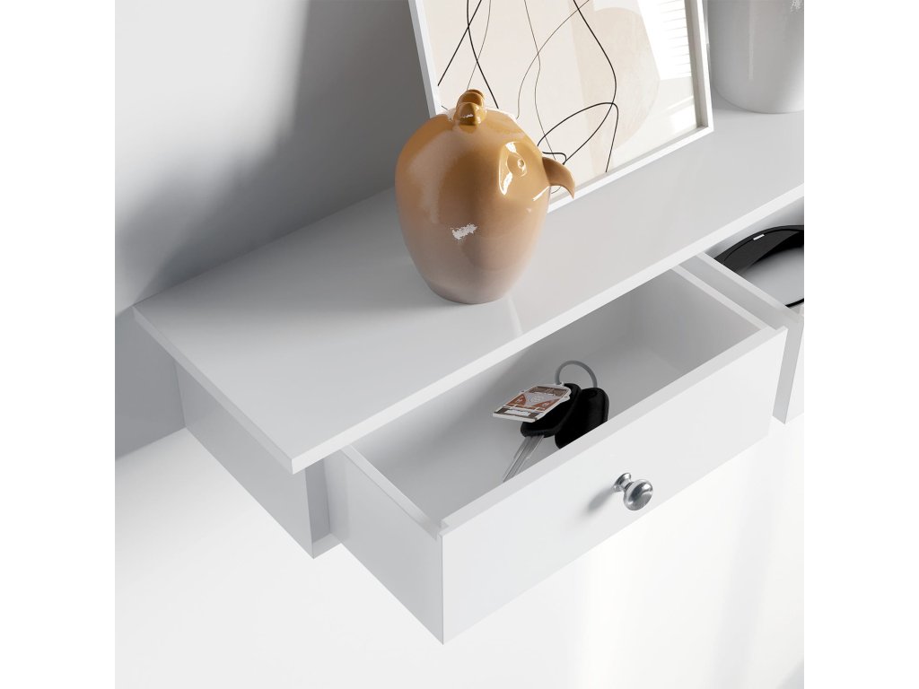 Police se vyznačuje všestranností a funkčností a skvěle se hodí do obývacího pokoje, ložnice, předsíně nebo domácí kanceláře. Zásuvky lze využít k uložení drobných předmětů, které se často ztrácejí, například klíčů.