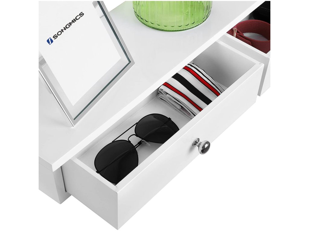Police se vyznačuje všestranností a funkčností a skvěle se hodí do obývacího pokoje, ložnice, předsíně nebo domácí kanceláře. Zásuvky lze využít k uložení drobných předmětů, které se často ztrácejí, například klíčů.