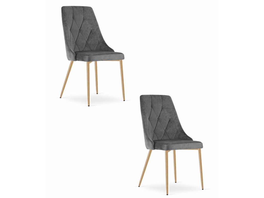 Židle IMOLA - tmavě šedý samet / nohy v barvě dřeva x 2