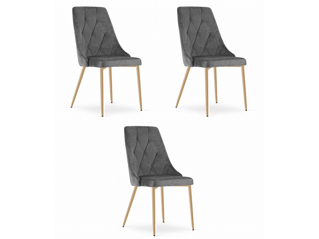 Židle IMOLA - tmavě šedý samet / nohy v barvě dřeva x 3