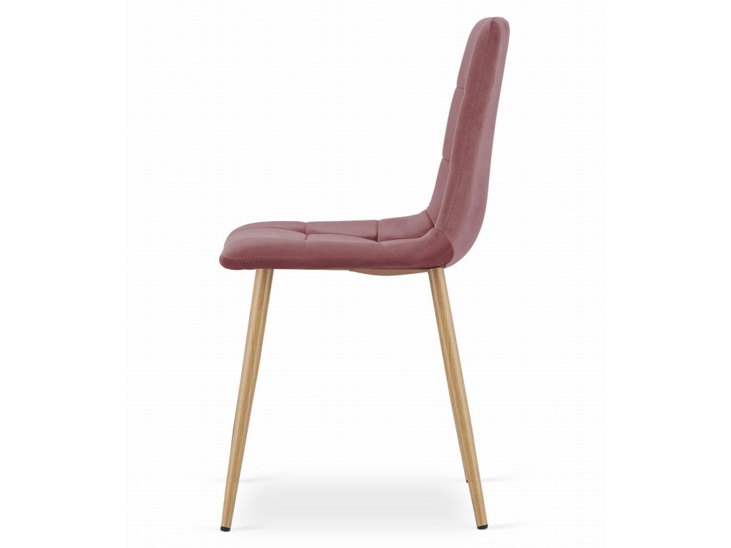 Židle KARA - růžový samet / nohy v barvě dřeva x 1