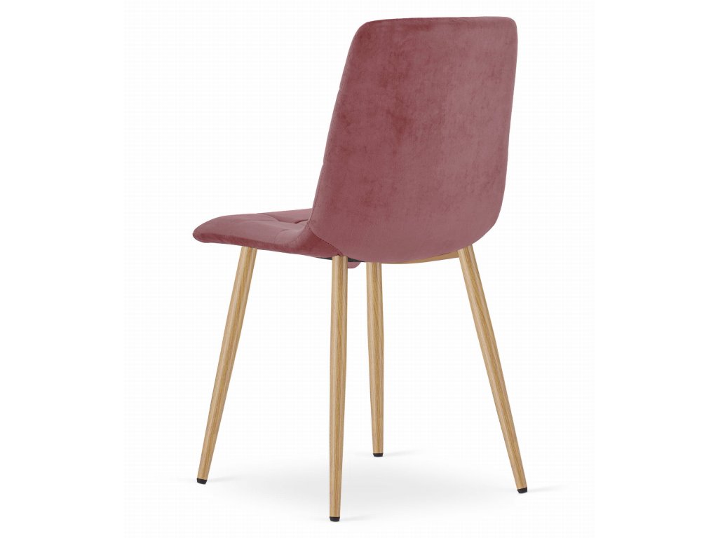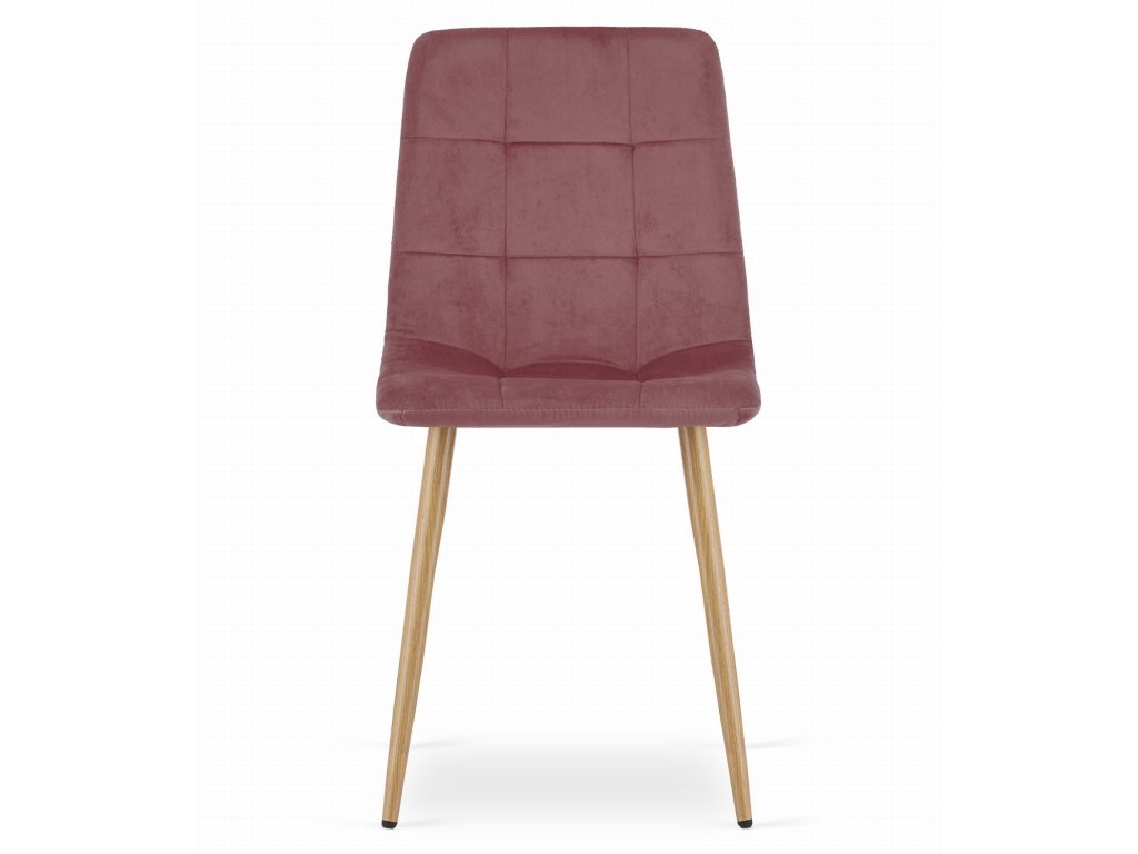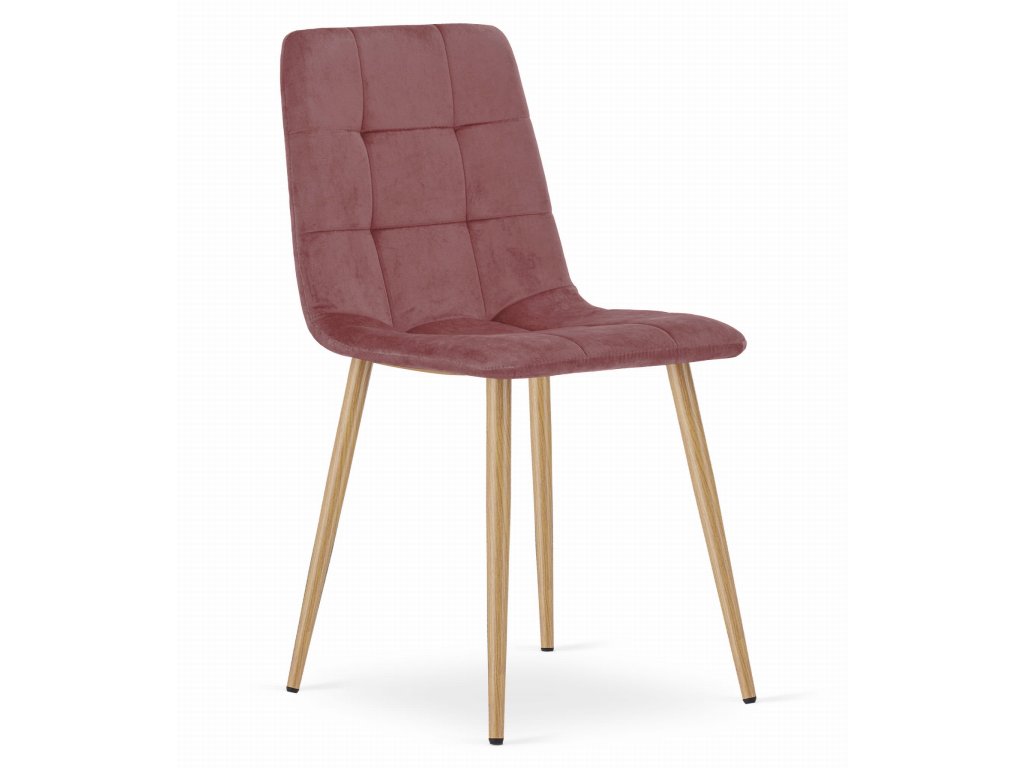 Židle KARA - růžový samet / nohy v barvě dřeva x 2