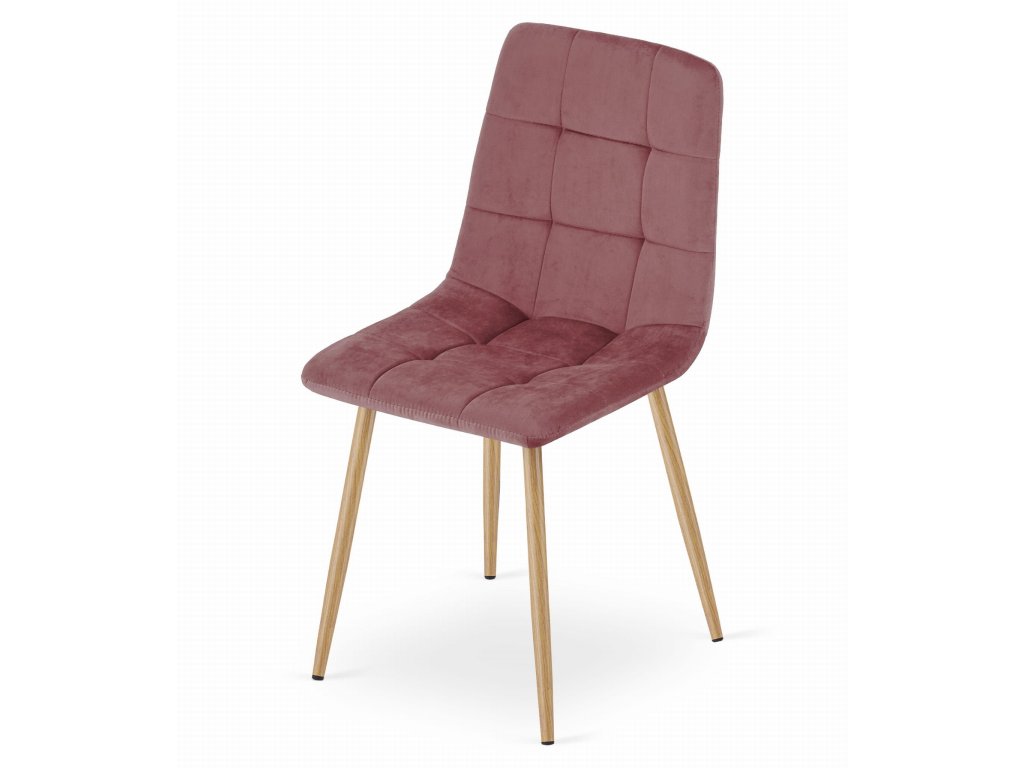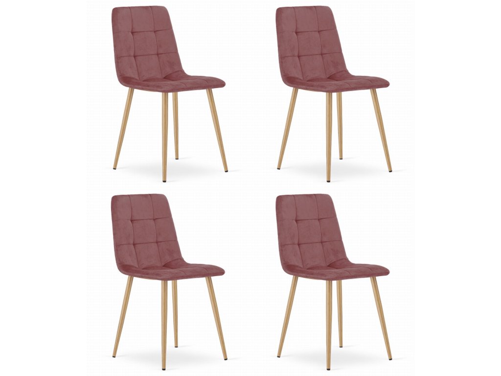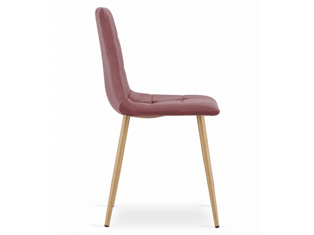 Židle KARA - růžový samet / nohy v barvě dřeva x 4