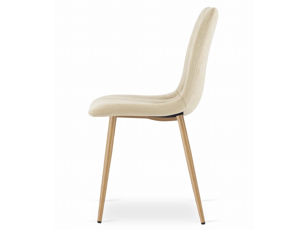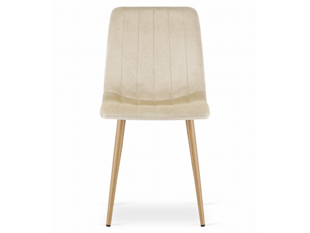 Židle LAVA - světle béžový samet / nohy v barvě dřeva x 1