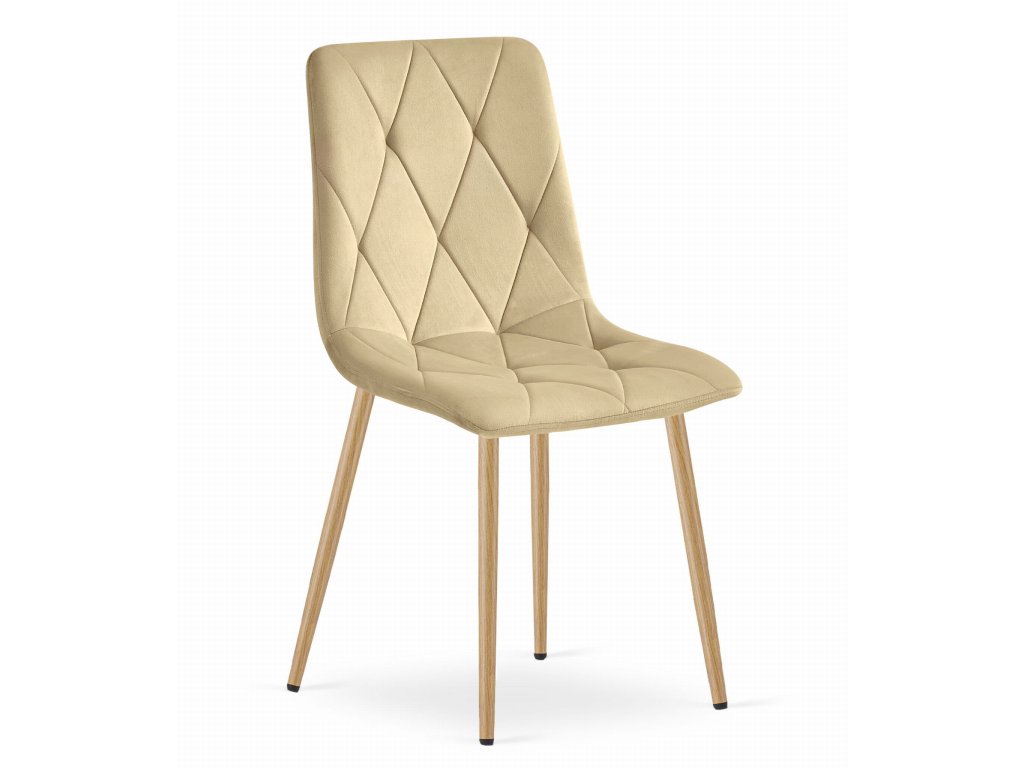Židle LIBRA - béžový samet / nohy v barvě dřeva x 1