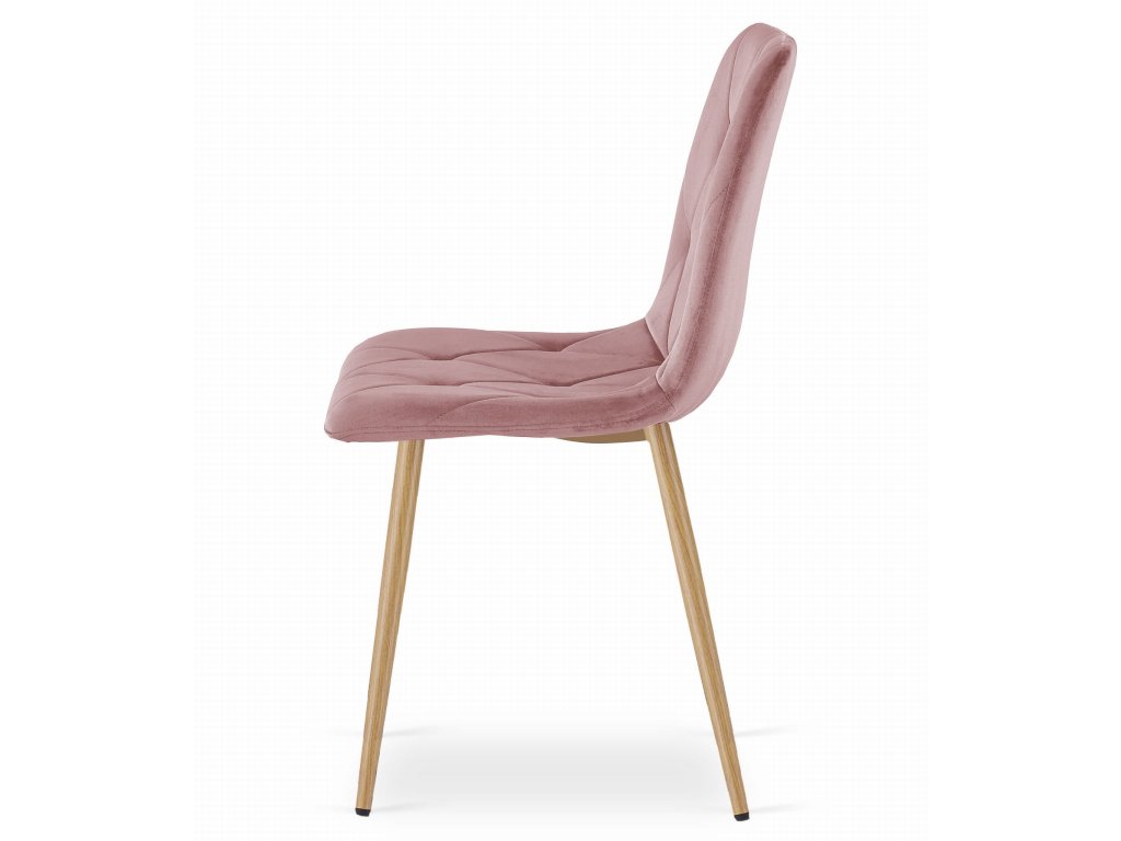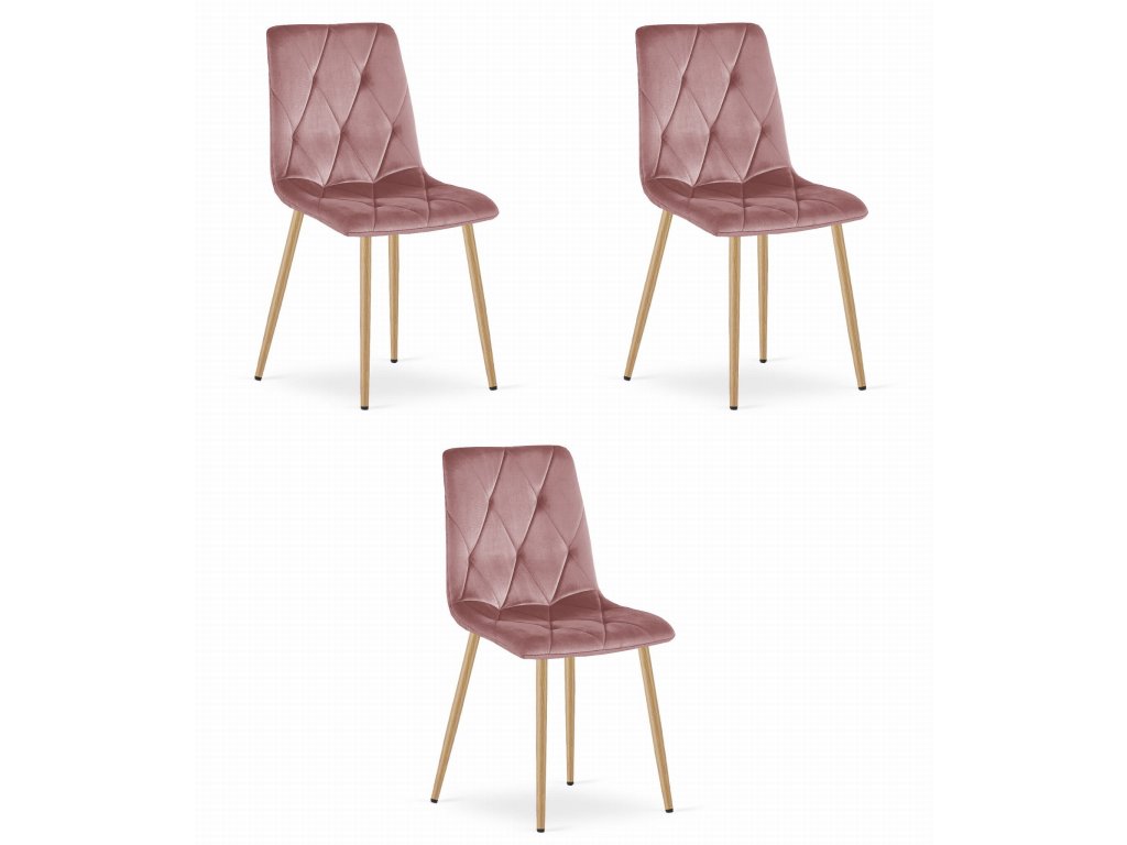 Židle LIBRA - růžový samet / nohy v barvě dřeva x 3