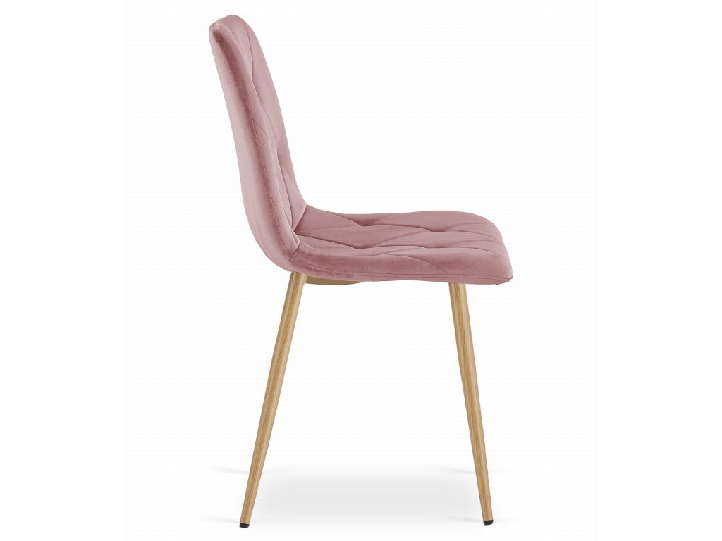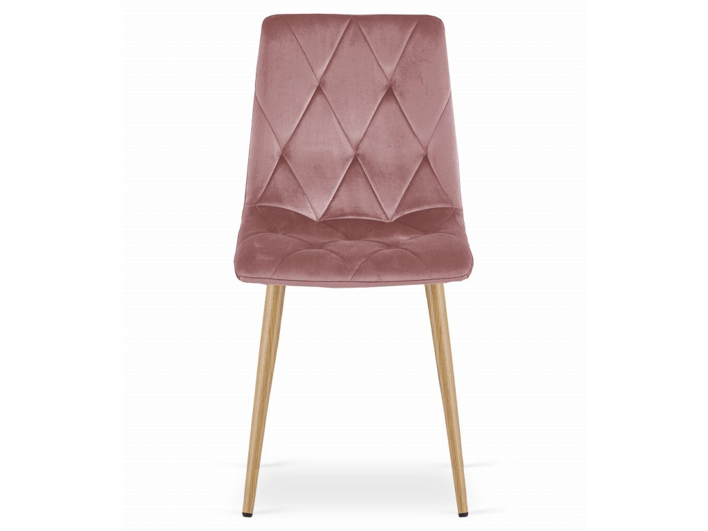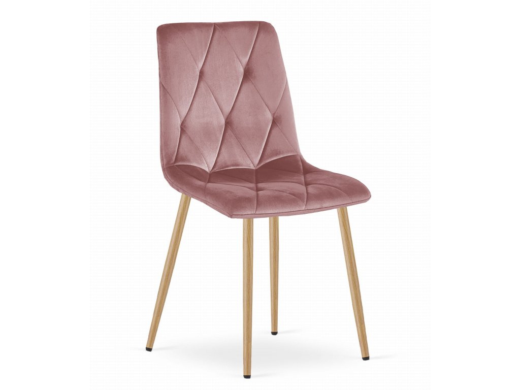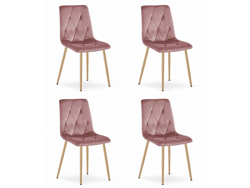 Židle LIBRA - růžový samet / nohy v barvě dřeva x 4