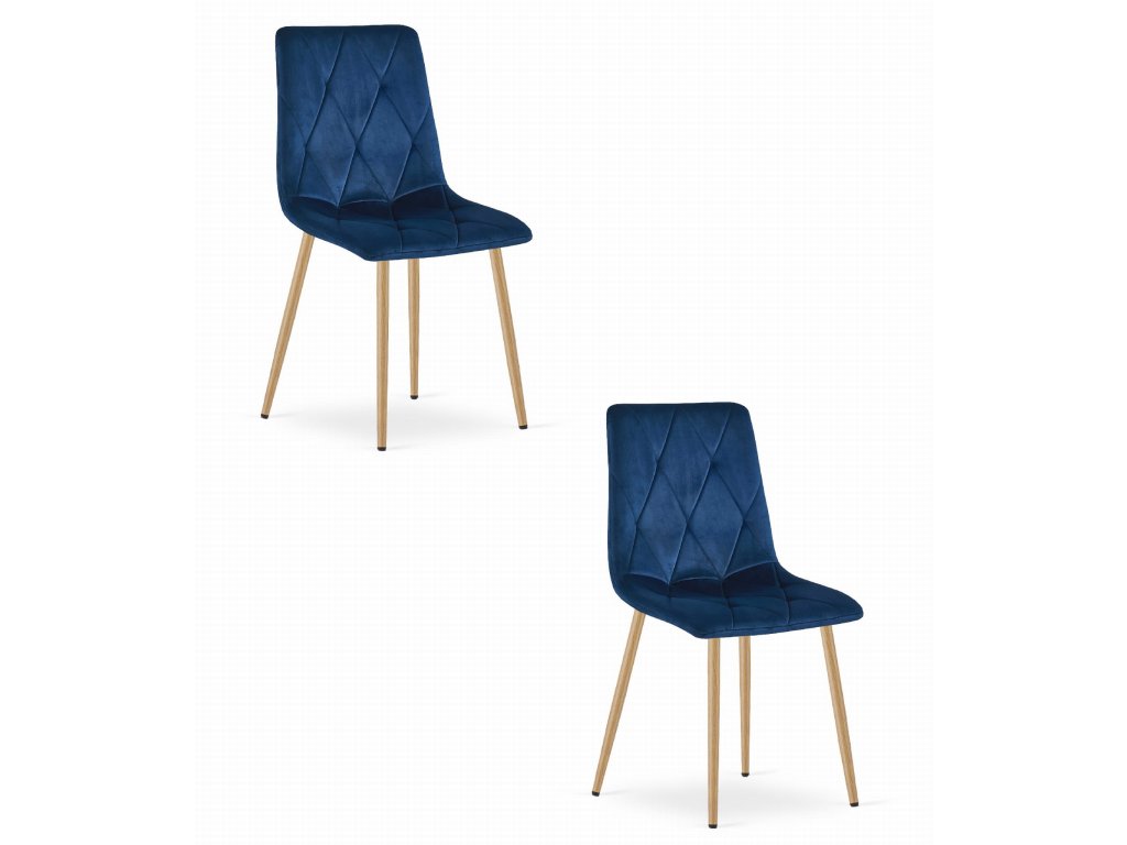 Židle LIBRA - tmavě modrý samet / nohy v barvě dřeva x 2