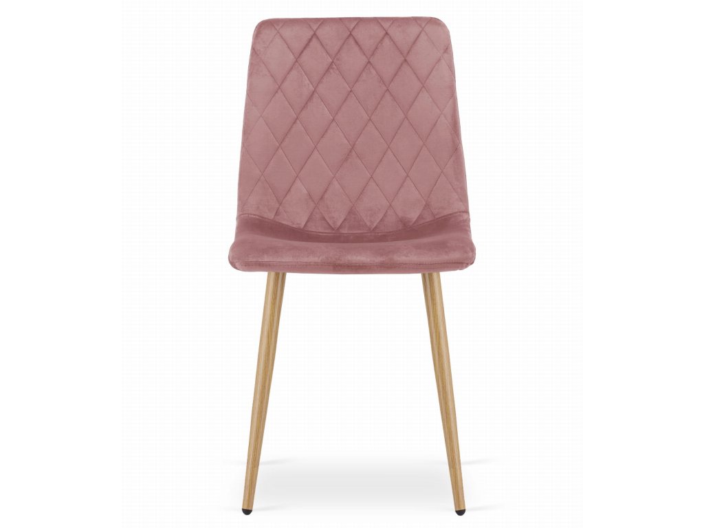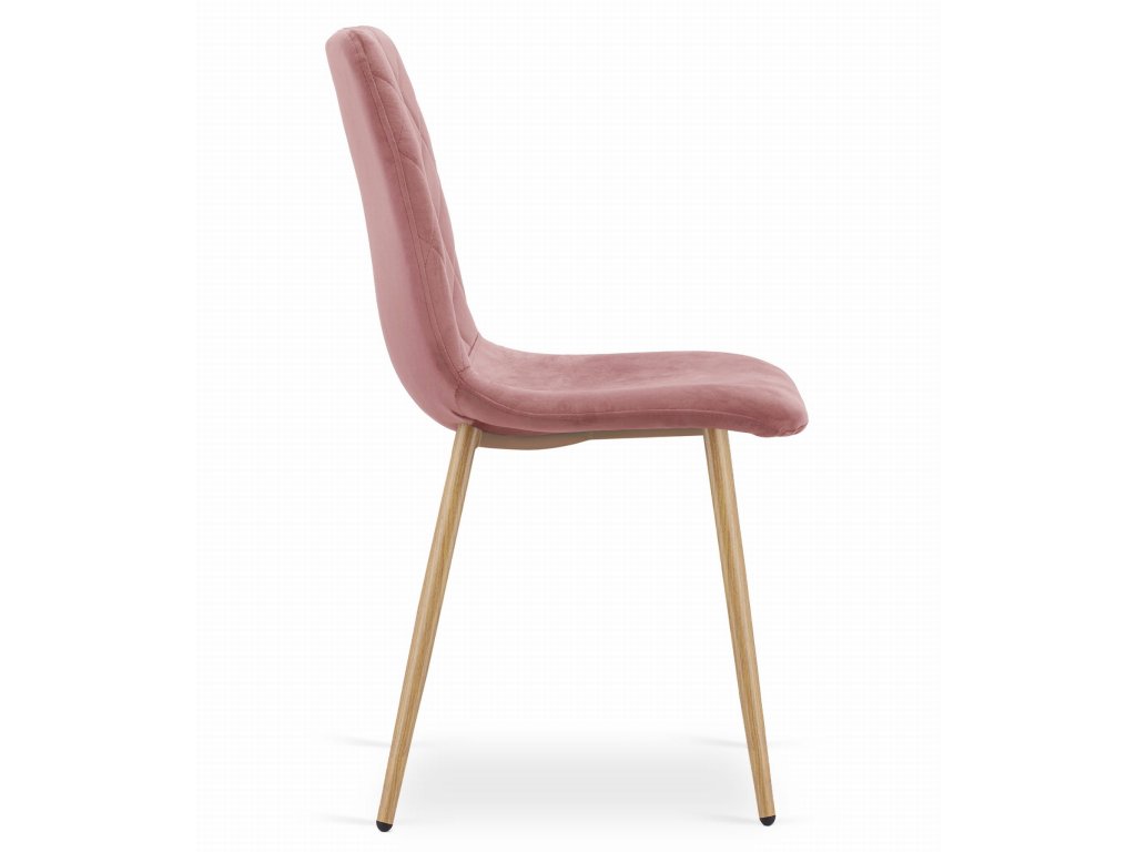 Židle TURIN - růžový samet / nohy v barvě dřeva x 4