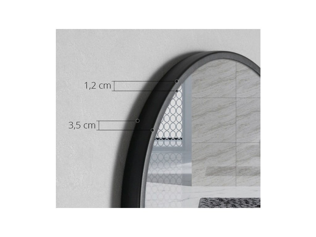Rám je vyroben z kovu a je opatřen černým práškovým lakem. Rám zrcadla se snadno čistí - stačí ho otřít vlhkým hadříkem.
