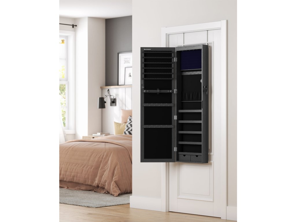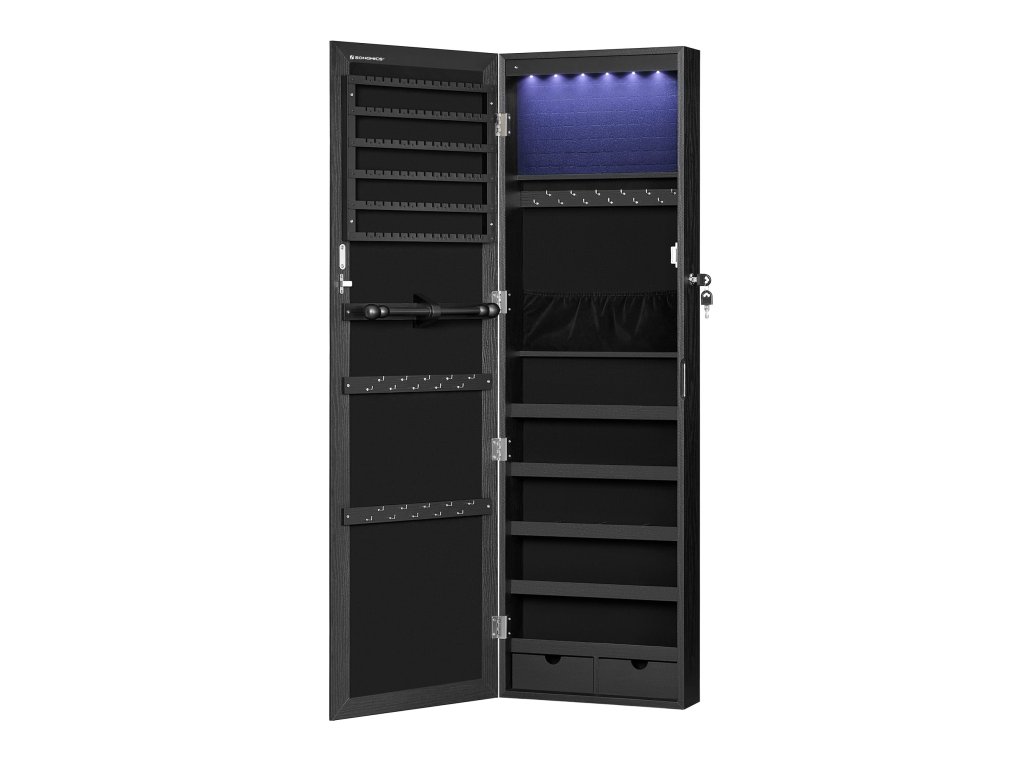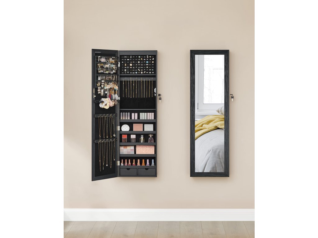 NÁSTĚNNÁ SKŘÍŇKA SE ZRCADLEM NA ŠPERKY, HODINKY, DOPLŇKY,BLACK