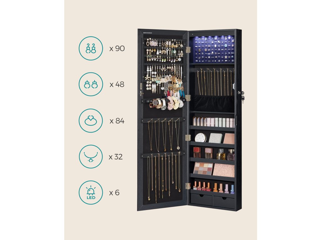Zrcadlová skříňka na šperky, hodinky, brýle a další cennosti. Velmi elegantní a praktická skříňka se hodí do interiéru vaší ložnice, šatny nebo pokoje a bude také ideálním a vhodným dárkem pro každou ženu.