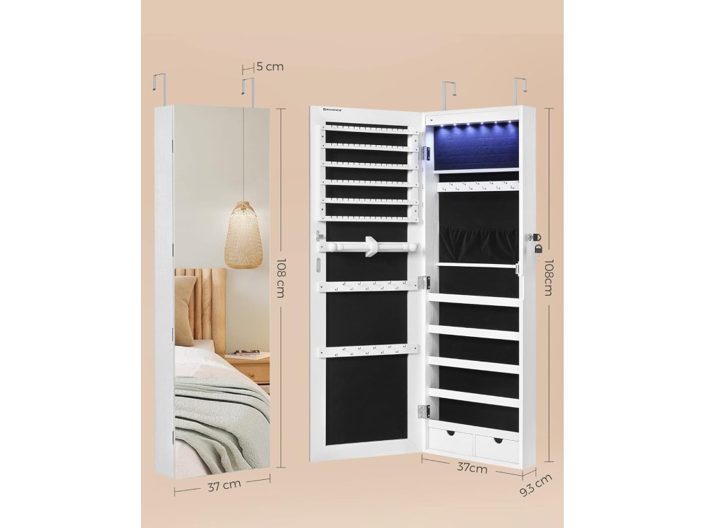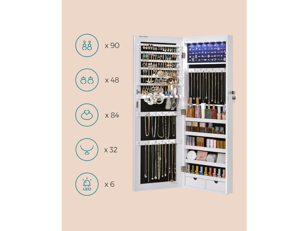 Zrcadlová skříňka na šperky, hodinky, brýle a další cennosti. Velmi elegantní a praktická skříňka se hodí do interiéru vaší ložnice, šatny nebo pokoje a bude také ideálním a vhodným dárkem pro každou ženu.